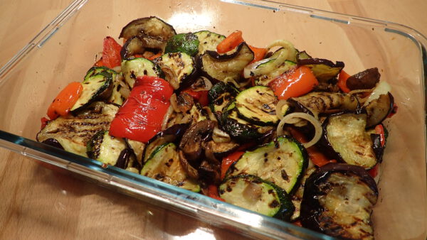 - Das heiße Gemüse vom Grill direkt in eine große Auflaufform geben und mit Balsamico(-Reduktion) beträufeln. Anschließend großzügig mit Olivenöl übergießen, vorsichtig vermengen und ein paar Stunden oder über Nacht durchziehen lassen. Ggf. etwas Olivenöl nachgeben und immer wieder vorsichtig vermengen.