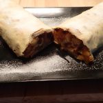 Den Apfelstrudel ein paar Minuten ruhen lassen, dann mit Puderzucker bestreuen. Währenddessen kann eine schnelle Vanillesauce hergestellt werden. Hierzu einfach Vanillepudding-Pulver nach Anweisung mit doppelter Menge Milch zubereiten.