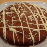 Die Schokobons auf dem Kuchen verteilen und mit den Fingern in den Teig drücken. Bei 175°C, Ober-/Unterhitze für ca. 50-60 Minuten backen.