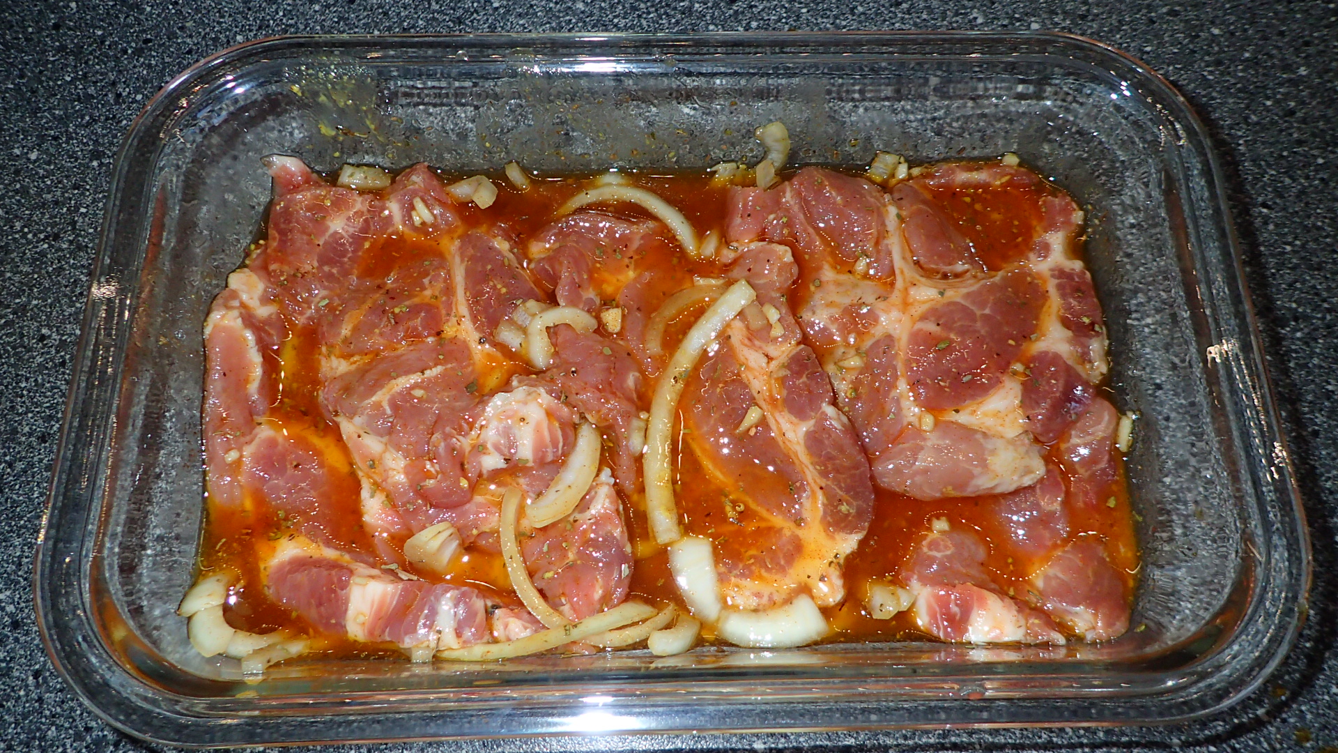 - (Nacken-)Steaks nacheinander in der Marinade wälzen und anschließend wieder hineinlegen. Abgedeckt über Nach im Kühlschrank ruhen lassen und eine Stunde vor dem Grillen bei Zimmertemperatur ziehen lassen.