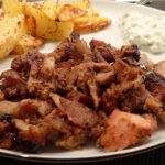 Sobald der Spieß außen eine schöne Farbe bekommt, nach und nach Fleischstücke abschneiden und in der Tropfschale warmhalten. Dann wieder ca. 10 Minuten weiter grillen lassen, bis die nächste Schicht Fleisch abgeschnitten werden kann. So weiter fortfahren.