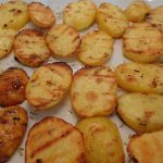 Nun die Kartoffeln abgießen, pellen und in etwas dickere Scheiben schneiden. Abkühlen lassen.