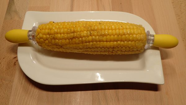 Wenn mehr Maiskolben zubereitet werden sollen, können diese ggf. auch übereinander ohne den Einlegeboden gelegt werden. - Anschließend mit Butter bestreichen und mit etwas Selleriesalz bestreuen.