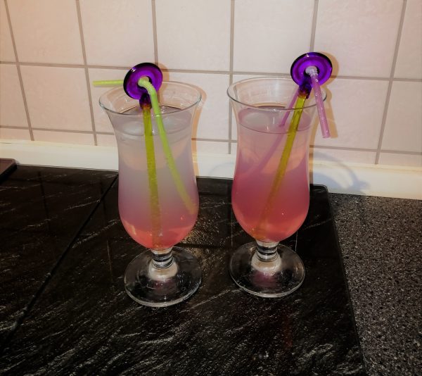 Einen Schuss Grenadine und zwei bis drei Eiswürfel hinzugeben.