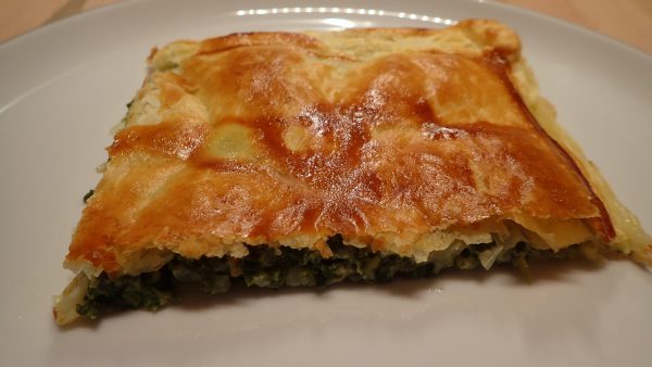- Ein Päckchen Blätterteig auf dem Ofenstein oder einem Backblech ausrollen und die Spinatmasse gleichmäßig drauf verteilen, dabei einen kleinen Rand lassen. Den zweiten Blätterteig oben drauf legen und die Ränder gut miteinander verschließen.