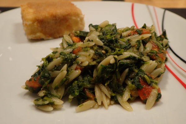 - Kritharaki nach Packungsanweisung kochen abgießen und ggf. bis zur weiteren Verwendung warm stellen.