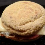 2 Spiegeleier braten und diese auf die Salamischeiben setzen. Darauf jeweils eine Scheibe Scheiblettenkäse legen, dann den Deckel oben draufsetzen.