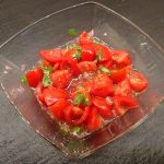 Die Tomatenwürfel unter das Salatdressing mischen.