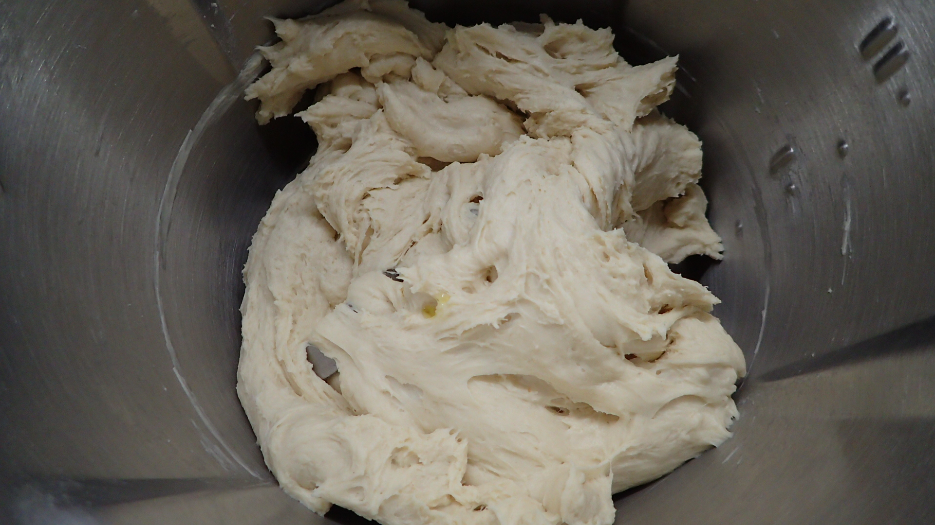 2. Mehl und Backpulver mit in den Topf geben und 2 Min. / Knetprogramm. Den Teig an einem warmen Ort 45 Minuten gehen lassen.