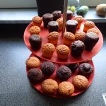 Den Ofen auf 180°C Ober-/Unterhitze vorheizen. Muffin Förmchen dreiviertel vollfüllen und ca. 30 Min. backen.