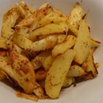 Kartoffeln waschen, schälen und in Spalten schneiden.